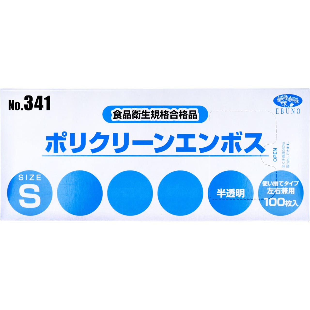 【業務用】No.341 ポリクリーンエンボス 食品衛生法適合 使い捨て手袋半透明 Sサイズ 箱入 100枚入