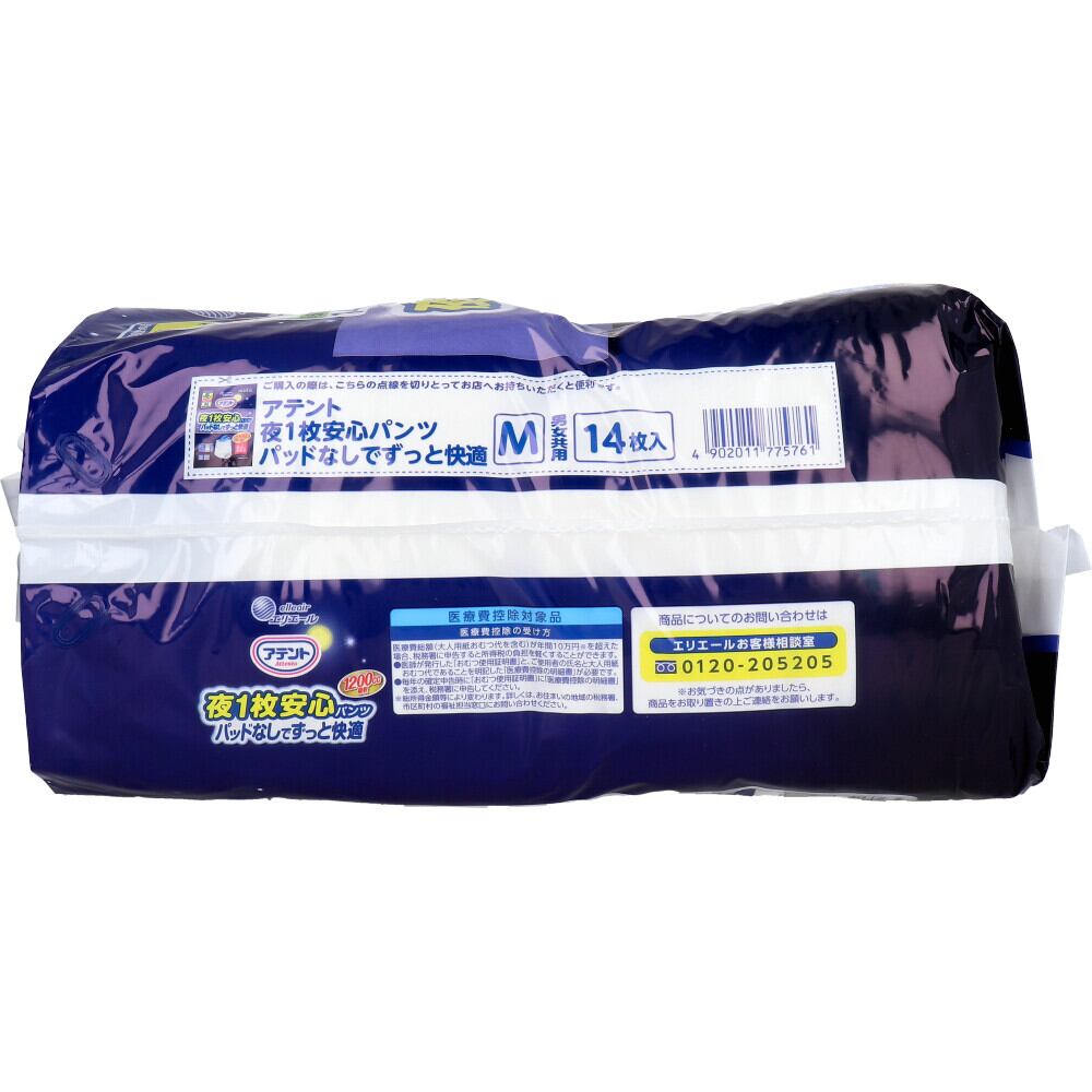 アテント 夜1枚安心パンツ パッドなしでずっと快適 男女共用 Mサイズ 14枚入