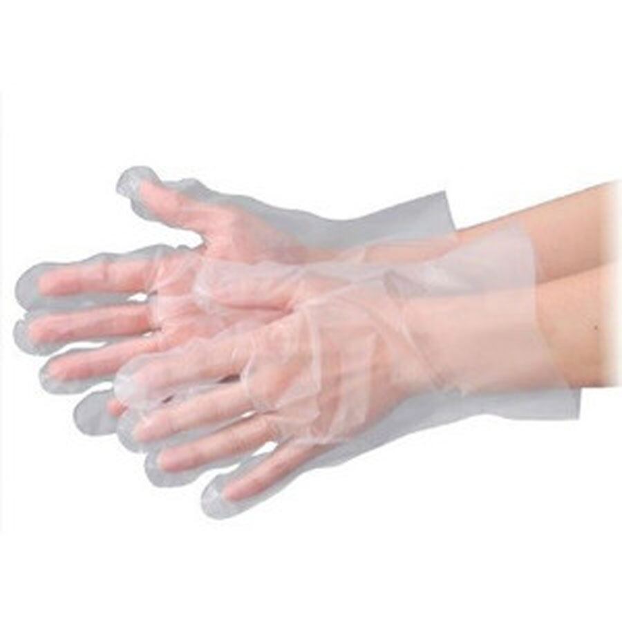 使い捨てタイプのポリエチレン手袋です。