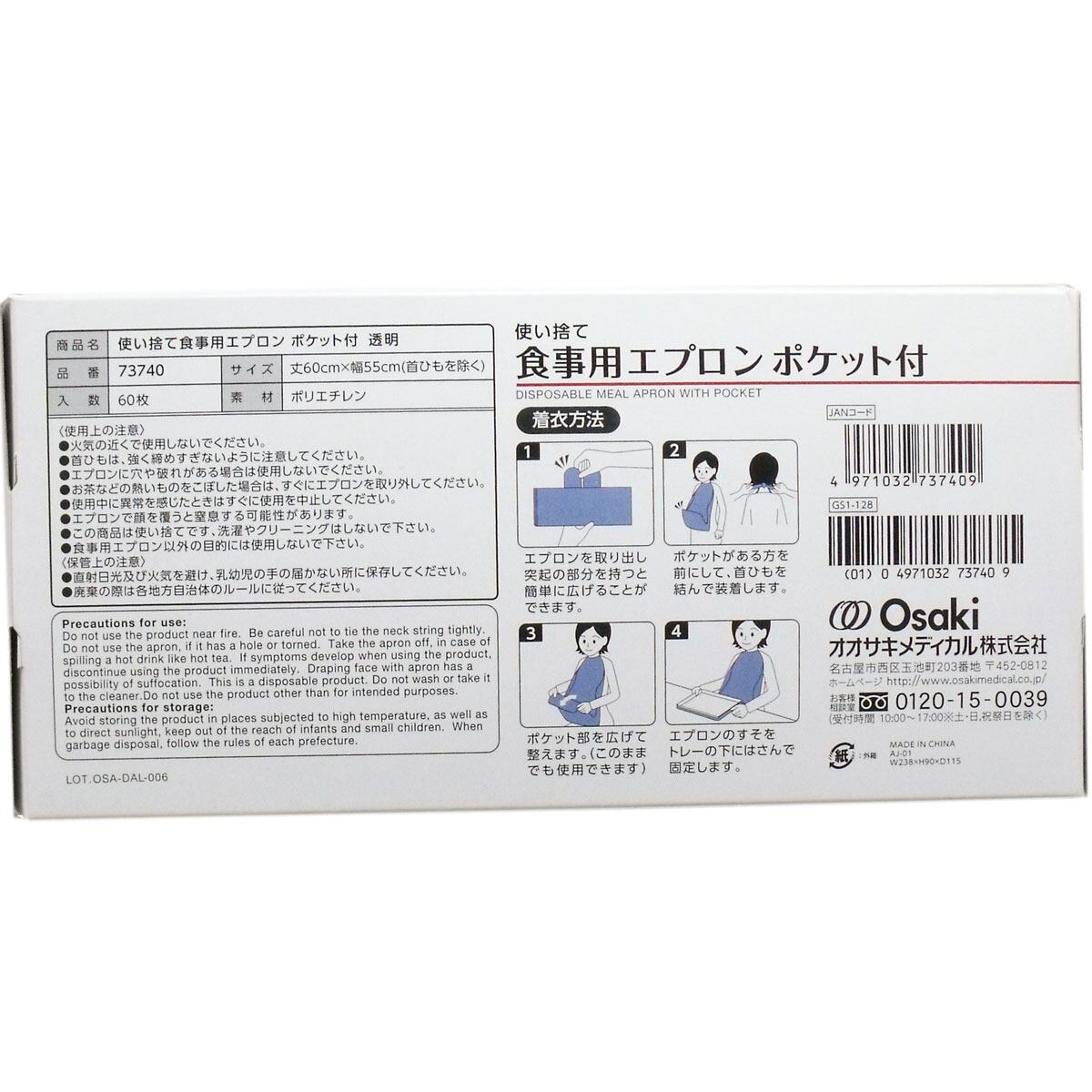 使い捨て食事用エプロン ポケット付 フリーサイズ 60枚入
