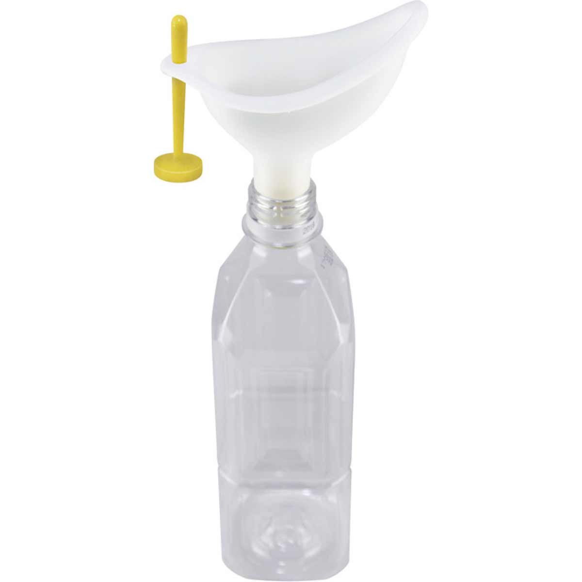 本体に差し込んである栓は外し、絶対に本体ではなくペットボトルをしっかり持ち、横や逆さまにしないようにしカバー部分ではなく中心の穴に直接注ぎ込むつもりで排尿してください。