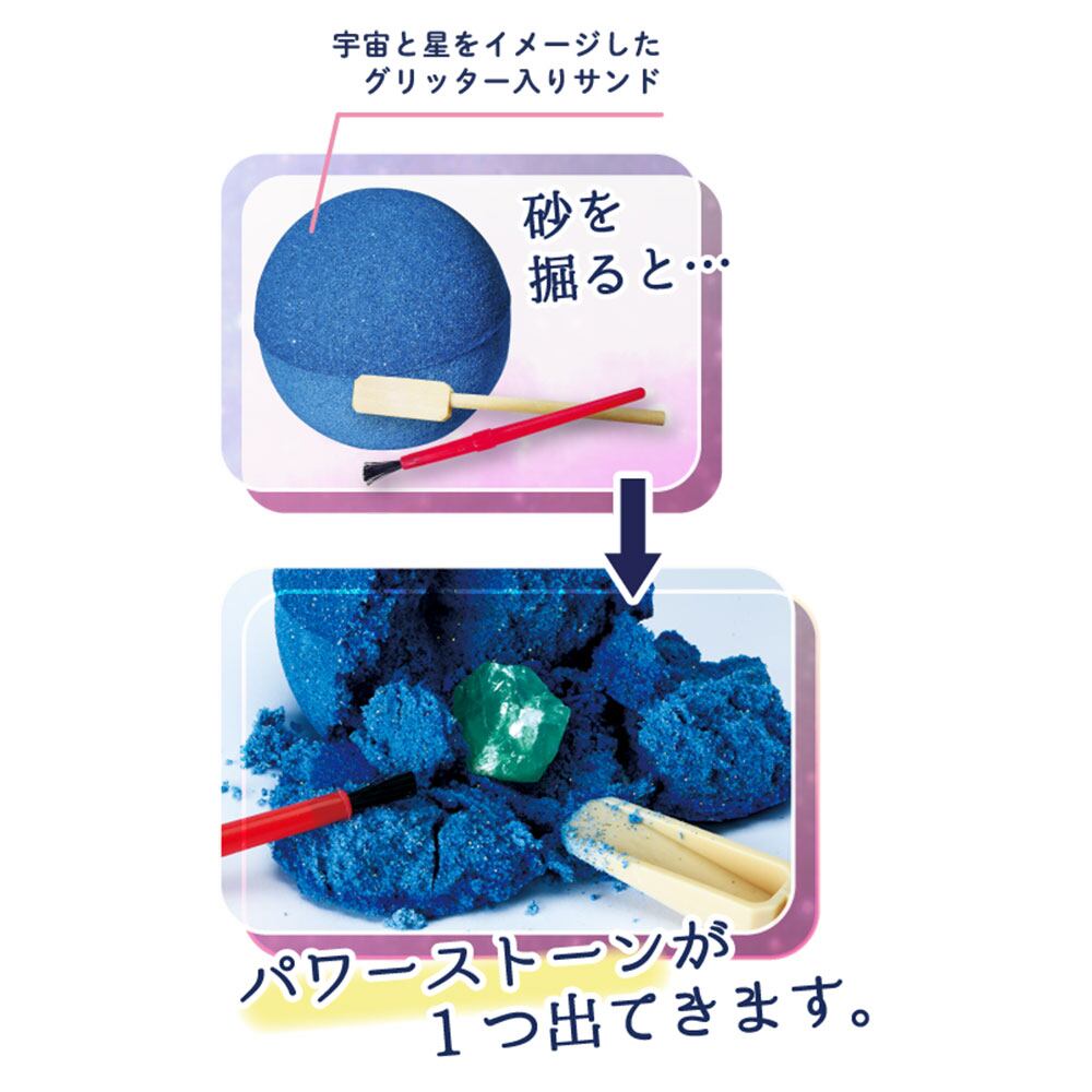 ●付属のスコップやブラシで砂を掘っていくと中からランダムに宝物が現れる仕組み。