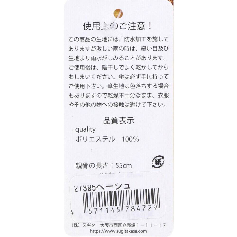 晴雨兼用ショートワイド傘 裏黒コーティング ダンガリー風無地プリント ベージュ