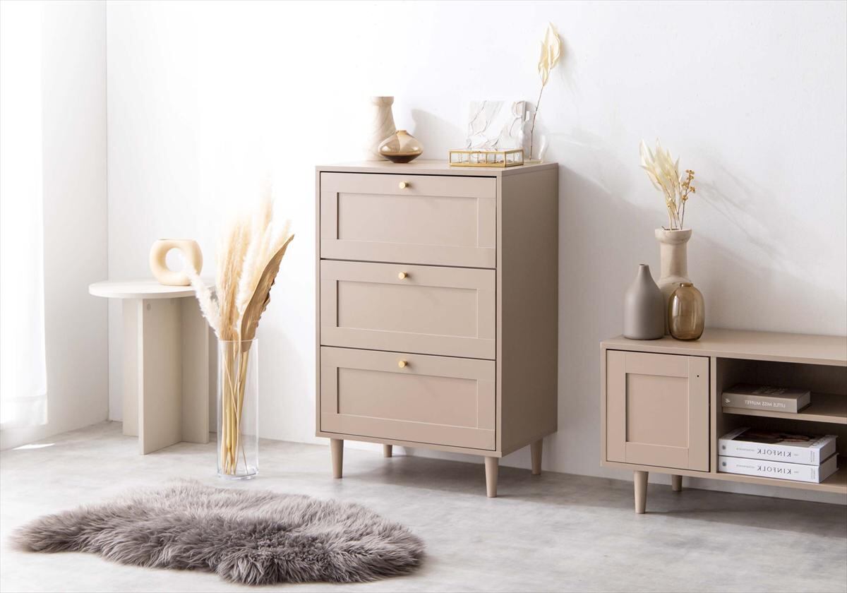 品のある框(かまち)デザインと柔らかなニュアンスカラーが印象的な『Calan(カラン)』シリーズのチェスト