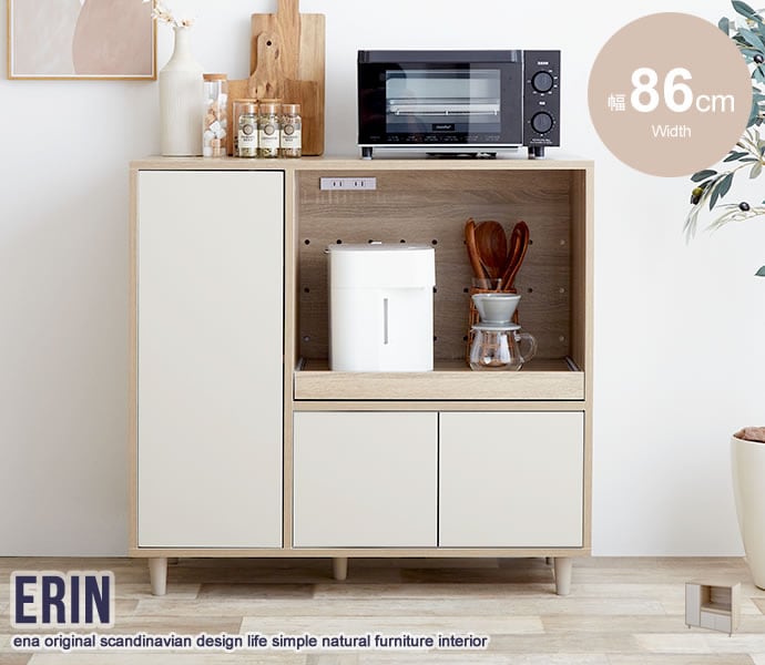 柔らかい木目調のナチュラルと明るいホワイトから成るバイカラーがおしゃれな『Erin(エリン)』のレンジ台