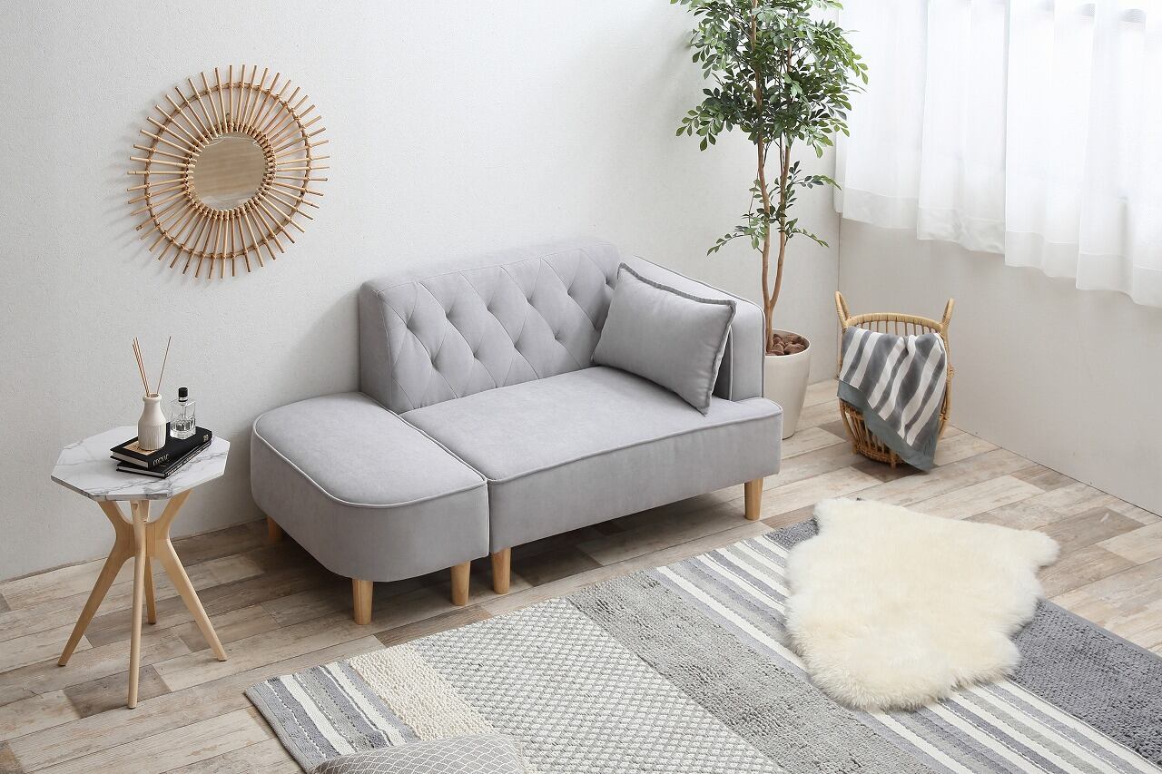 空間に馴染むオットマン付き2人掛けソファ