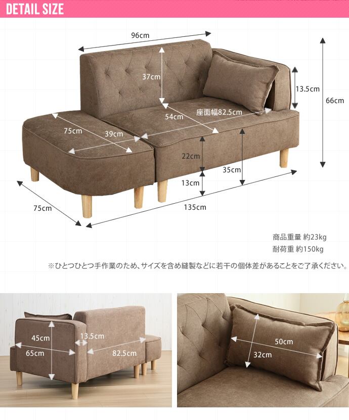 【2人掛け】 Emilia オットマン付き2人掛けソファ