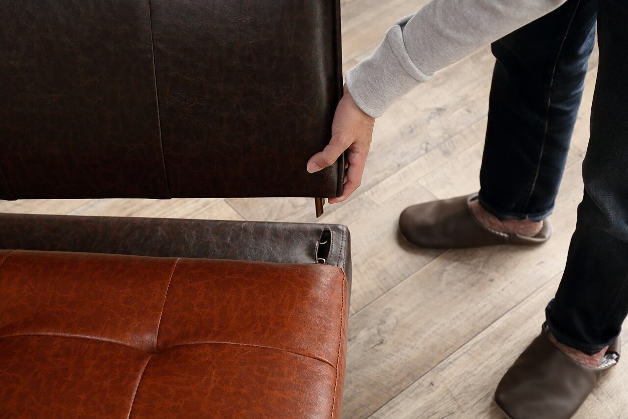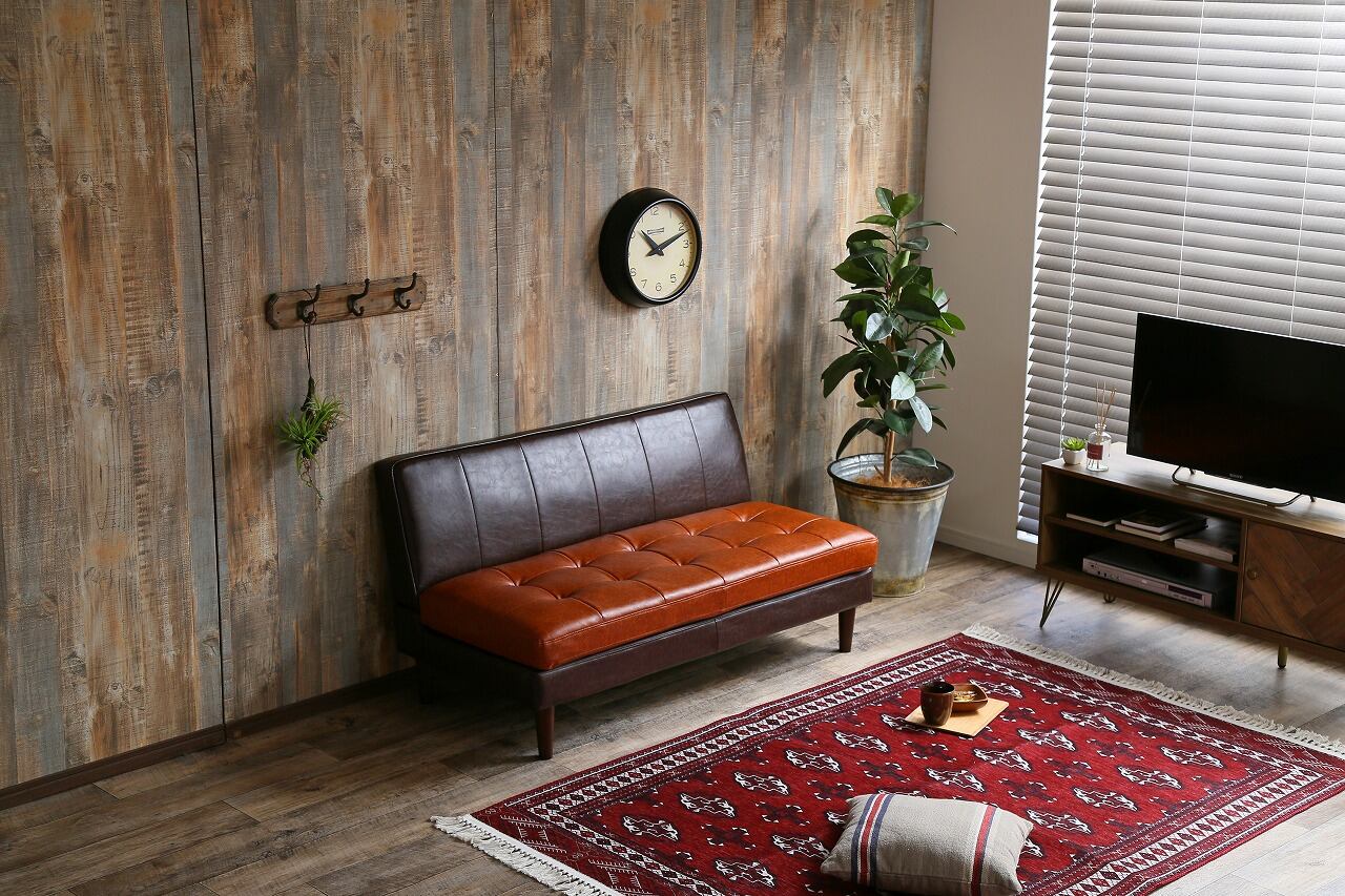 【2人掛け】ツートンカラーが魅力のヴィンテージ調ベンチソファ