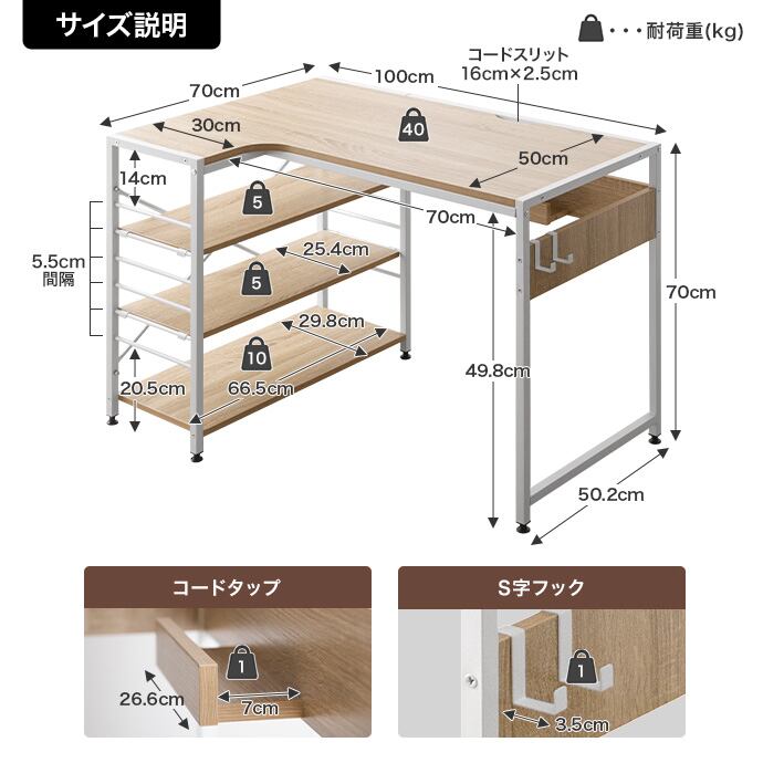【耐荷重】天板:約40kg、可動棚:各約3kg、固定棚:約10kg