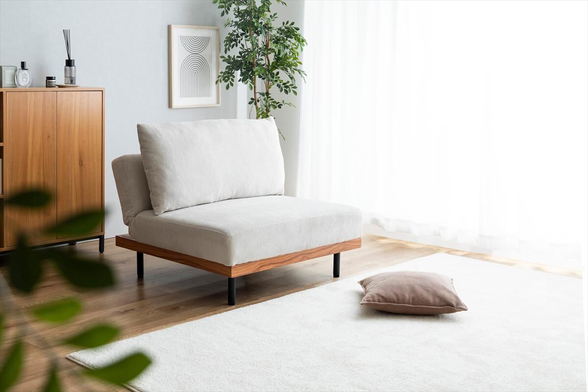 コーデュロイ×木目柄×アイアンの異素材MIXが味わい深い『Ridley(リドリー)』リクライニングソファ