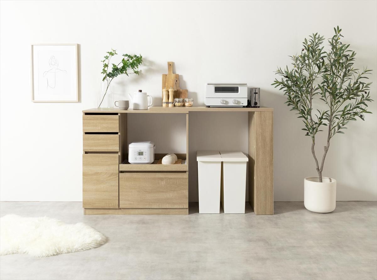 【幅100〜154.5cm】Cyrus 伸縮スライド台付きキッチンカウンター