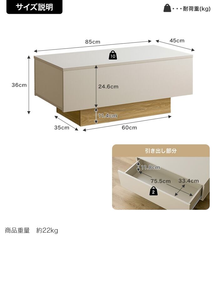【耐荷重】天板:約10kg 、引き出し:約2kg