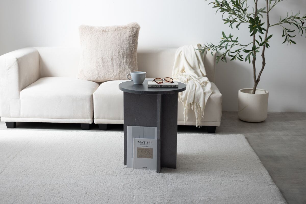 丸い天板と個性的な脚部がこなれた空間を演出する『Luna(ルナ)』ラウンドサイドテーブル