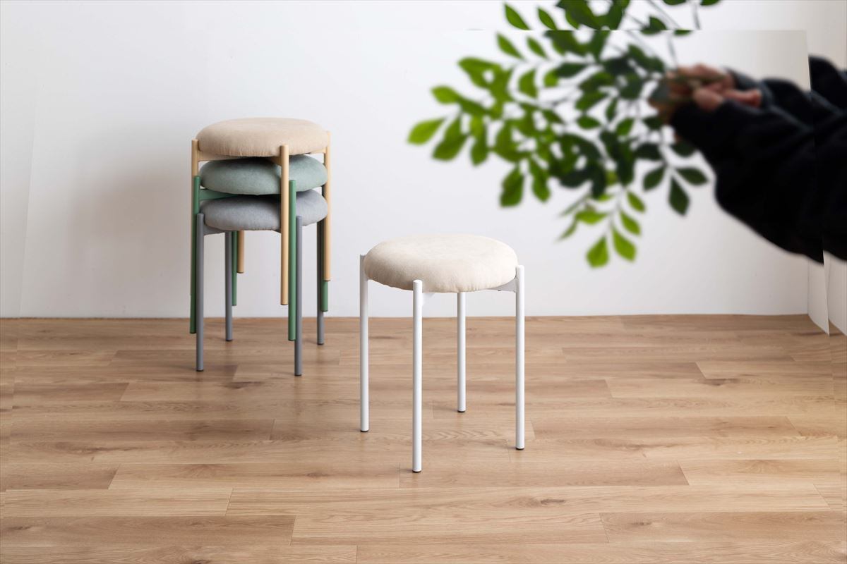 ラウンド型で座面と脚部の配色にこだわった『Mael(マエル)』スタッキングスツール