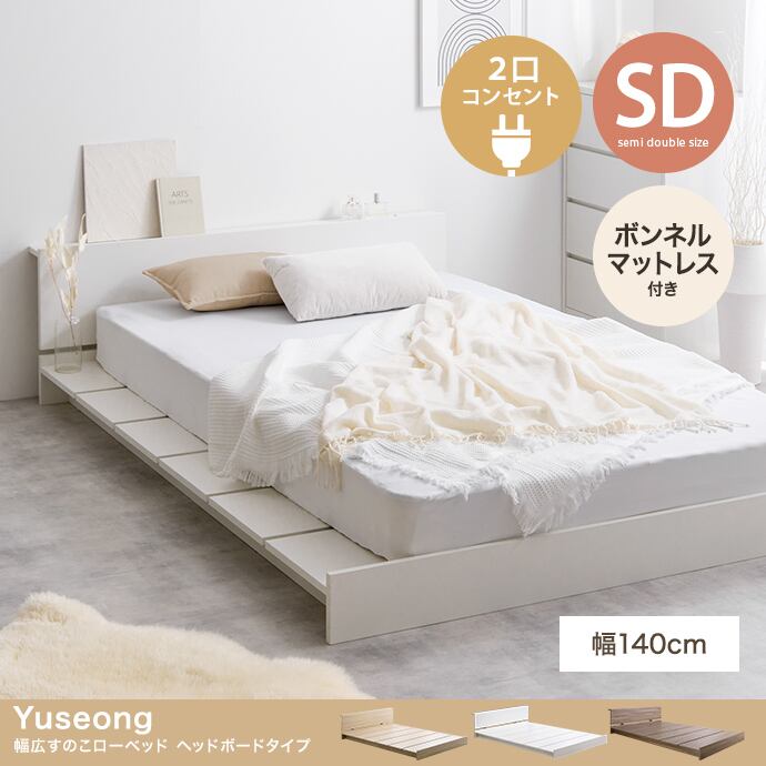 【セミダブル】Yuseong 幅140cm幅広すのこローベッド ヘッドボードタイプ(ボンネルマットレス付き)